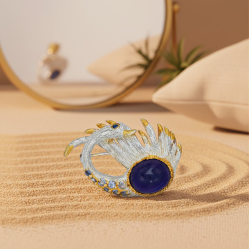 Sõrmuse disain meenutab luksuslikku lilleõit – kontrast musta roodiumi ja kuldsete kaarte vahel loob dramaatilise, samas lummava efekti. Keskne ametüst on kui õie süda, mis tõmbab pilku oma sügava lilla tooniga. Viimistletud tekstuur ja säravad tsirkoonid toovad ehtesse elu ja liikumise – tulemuseks on pilkupüüdev ja elegantne ehe pidulikuks kandmiseks.