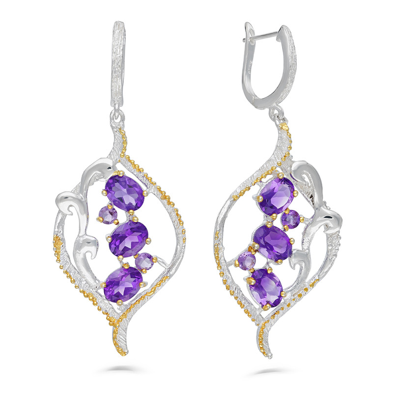 Ilusad osaliselt kollase kullaga kullatud hõbedast (925) kõrvarõngad kaunite ja pilkupüüdvate looduslike ametüstidega (6 tk, 8 x 6 mm, ovaalne lihv; 4 tk, 4 mm, ümar lihv). Inglise lukk.